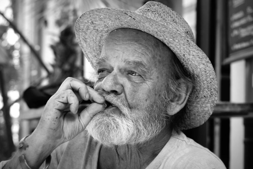 God opens the door, a stubby in one hand