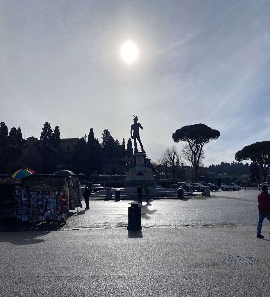 Across from the piazza the receding old Belvedere wall